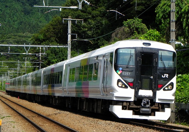 臨時列車の内容ははまかいじ号・ホリデー快速河口湖1号と3号・NO.DO.KA(列車名不明)・ホリデー快速ビューやまなし号・お座敷山梨もも狩り号です。 それらはフィルムで撮ったので、後日掲載いたします。動画は本日公開予定です。 それ以外はデジタルカメラで撮影しました。 ●中央本線 高尾・相模湖間で撮影 上り列車です。おそらく臨時特急の送り込み回送です。良いものが撮れました。 しかし日差しが強いのでLEDが見づらいです。しかも8時台だと側面に陽が回りません。 ●上に同じ 今度はかいじ号です。やはり貫通型の先頭車はかっこいいですね。 しかし綺麗な串パン(?)になってしまいました。 ●上に同じ 今度は11両であずさ号がやってきました。 なんかE257系祭りになっています。 ●上と同じ 堂々の12両編成スーパーあずさも長い直線で綺麗に撮れます。 車体側面に傾斜があるため、緑が窓に写って良い感じです。 ●上に同じ 深緑に山スカは映えます!いいですね! しかしこれも串パンになっています。 ●上に同じ 長野色も撮りましたが、この辺りから曇ってしまいました。 今回は下り列車も撮影したので曇ったのは好都合でしたが、上りは晴れてくれたほうが良かったです。なんと自己中心的な意見でしょうか(笑) 下り列車も撮影 ●上のポイントの反対側 こちらは9時頃まで側面順光、午後順光となります。しかしこのあと完全に逆光になりました。 結局本番は先ほどのポイントから振り返って撮影しました。 これだけ撮れればもう満足ということで、臨時列車の復路も撮らずEast i-Eの検測も撮らず、拝島工臨も撮らずに帰宅!(笑) PR 2011.07.23 Sat 19:29:22 C61復活号2011.07.23 Sat 15:11:42 チャリ鉄②本日午後も自転車で撮影に行きました。