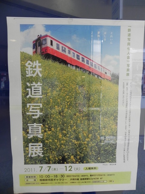 それが本日実施されるという情報がありましたので、立川駅まで行きました。が 0時を12時と勘違いするというとんでもないミスをしてしまったため無駄足になりました。 その為、列車を適当に撮って帰りました。 E233系の方向幕切れやすい・・・ この駅は面白いアングルで撮れます。しかし、この手前には障害物があり、しかもホームが狭いので許容人数はすごく少ないと思います。 10両編成の場合、編成後部にも障害物が入ってしまいます。 ●上に同じ タキ1000も画像を加工したらかなりかっこいいです。 ●上に同じ こちらも1番目の写真と同じホームから撮ったのですが、架線柱などが気になります。 南武線の205系の方向幕はLEDになっていないので良いですね。 ●上に同じ 乗務員交代 中央線は乗務員さんの交代が頻繁に行われていて面白いです。 ●上に同じ ラストに1番上の写真と同じように撮影しました。 2011.07.07 Thu 16:22:42 写真展見学本日は鉄道の写真展を見に行きました。 「鉄道写真七人会」というグループの方が本日から12日までおこなっています。 会場もJR横浜線 相模原駅の駅ビル4階ということで、すごく分かりやすかったです。 展示されている写真はどれも綺麗でした。特にいすみ鉄道の写真と、北海道の写真が印象に残っています。 個人的には元々九州に住んでいたので、新旧つばめの写真も良かったと思います。 蒸気機関車、気動車の写真が多かったです。 写真セットも販売されていたので購入しました(収益は三陸鉄道に寄付されるようです)。 私は列車の編成写真を撮ることが圧倒的に多いのですが、このような風景とからめた写真はとても興味があります。 横浜線の沿線に住んでいる方は、この写真展を見てみてはいかがでしょうか。 http://homepage1.nifty.com/RP_Sitinin_kai/index.html 2011.07.05 Tue 21:37:16 冬2011.07.01 Fri 19:07:20 京王高尾線6両編成を撮影本日7月1日から、京王電鉄では節電ダイヤでの運転が開始されました。